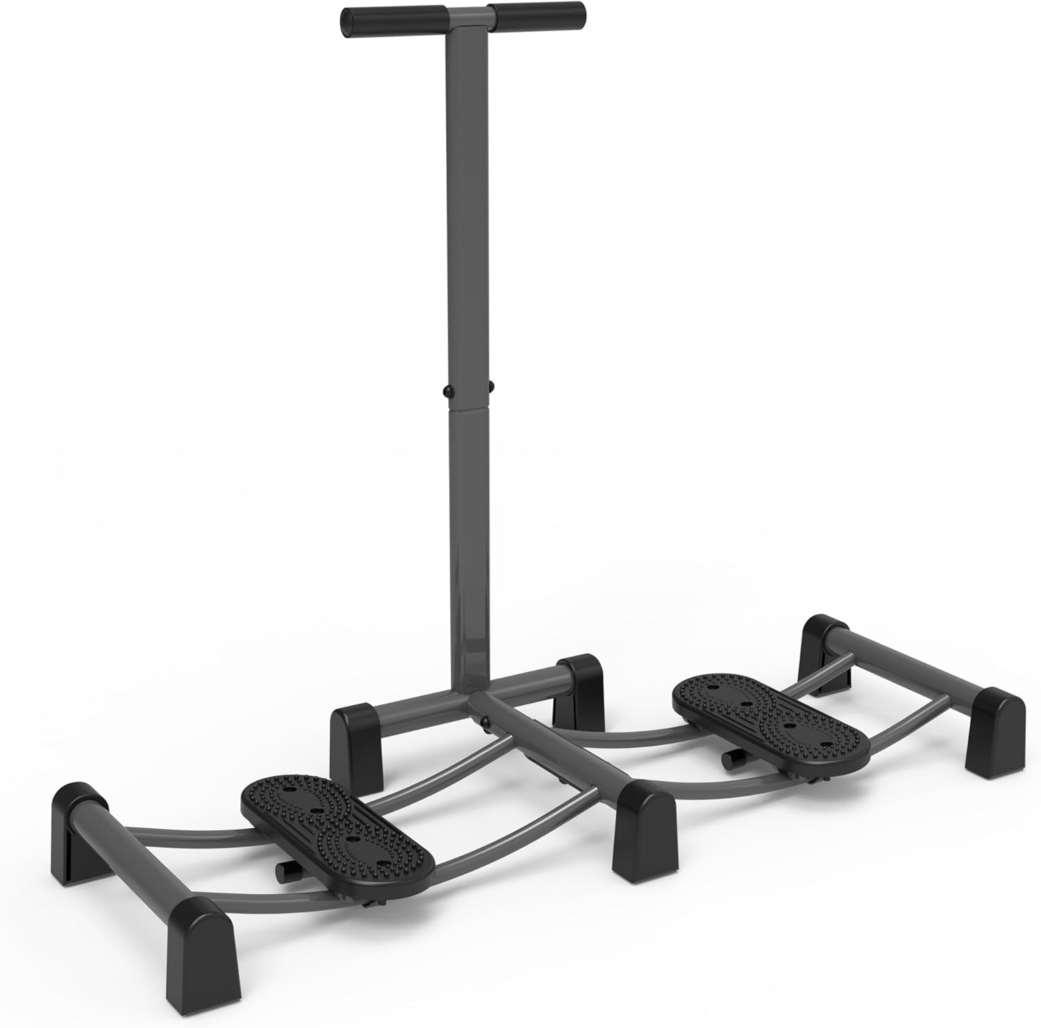 Grâce à son design compact, la machine s'intègre facilement dans un espace intérieur. Les poignées ergonomiques et les plateformes antidérapantes offrent une prise confortable et stable pendant l'exercice.